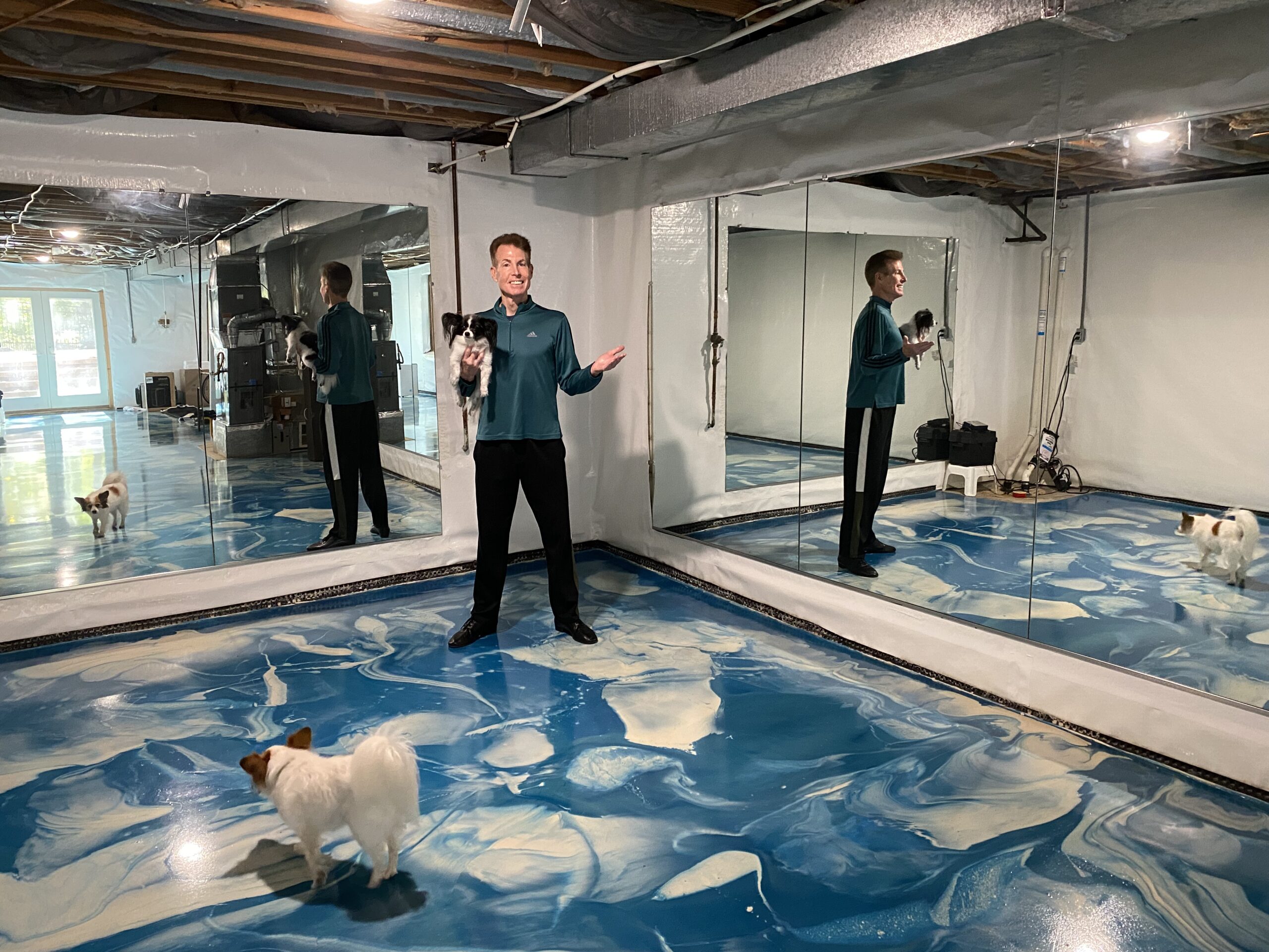 The real kicker comes when they stop doing all of this and grab their “bags” again. But instead of going upstairs, they open the dreaded “other” door. Noooooooo! The “other” door leads down to the dark place below ground. When I was younger, I thought it was kind of cool…a giant room with a slippery floor and a lot of pond-things on the wall; I could admire myself from every side! But now, I am totally over it. They put on their black paw covers and start sliding around. It’s embarrassing…what if the neighborhood hounds see them? Besides, at this point, I want my dinner.