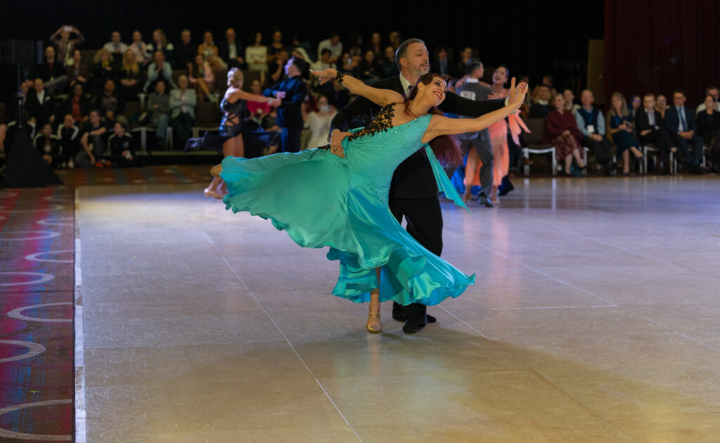 Bryan and Christine Young dancing American Smooth at the 2025 USA Dance National DanceSport Championships. Photo by Eamonn Knights.